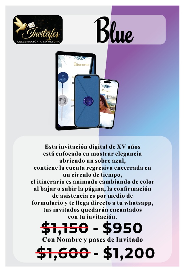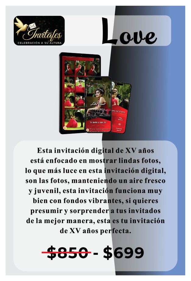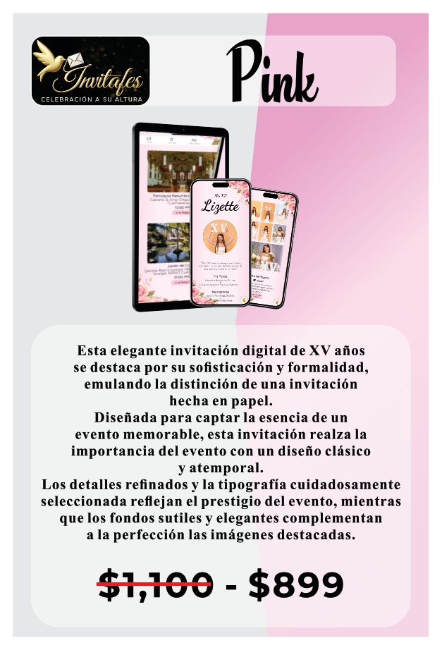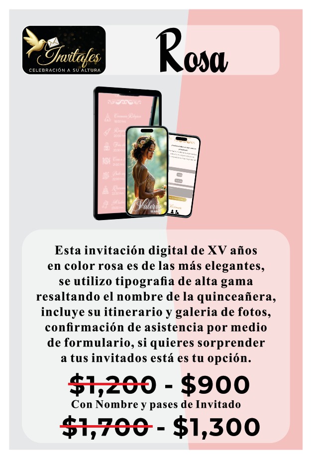 En Invitafes transformamos cada invitación en una experiencia única. Nos especializamos en crear invitaciones digitales elegantes, personalizadas y llenas de estilo, ideales para quienes desean anunciar su evento con distinción. Creemos que una gran celebración comienza con una gran invitación, por eso cuidamos cada detalle para reflejar la esencia y emoción de ese momento tan especial.